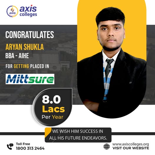 We are delighted to congratulate Aryan, our BBA final year student of Axis Institute of Higher Education, on securing a placement at Mittsure with an impressive salary package of 8 LPA.
