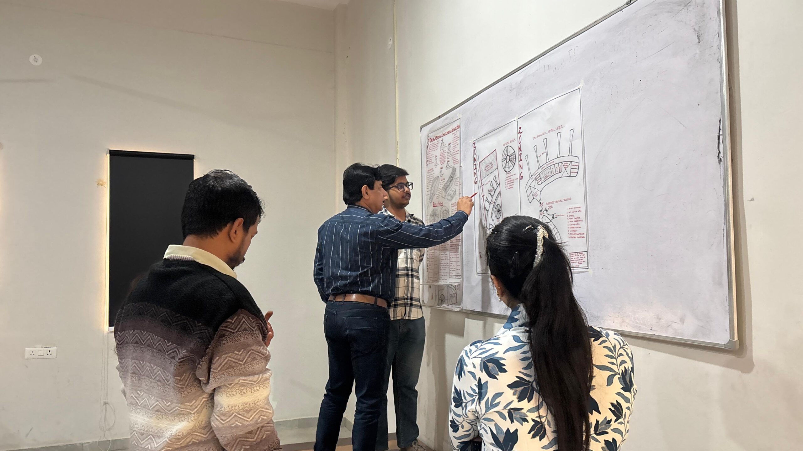 The session was conducted in the presence of the Director of Architecture, Dr. Rishi Raj Kapoor, along with internal faculty members of the department. The panel actively engaged with students through critical discussions, raising questions about design feasibility, circulation clarity, structural possibilities, and contextual relevance. Constructive feedback was provided to help students refine their planning approach before moving forward to detailed design development.