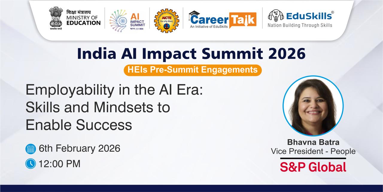 The session was conducted as part of the India AI Impact Summit 2026 | EduSkills Pre-Summit Engagements, aiming to prepare students for the rapidly evolving technology landscape shaped by Artificial Intelligence. The talk examined how artificial intelligence transformed various business sectors while showing that companies need employees who possess both technical skills and flexible thinking abilities and exceptional problem-solving skills. The speaker emphasized the importance of developing in-demand skills such as data literacy, AI fundamentals, cloud computing, and analytical thinking.