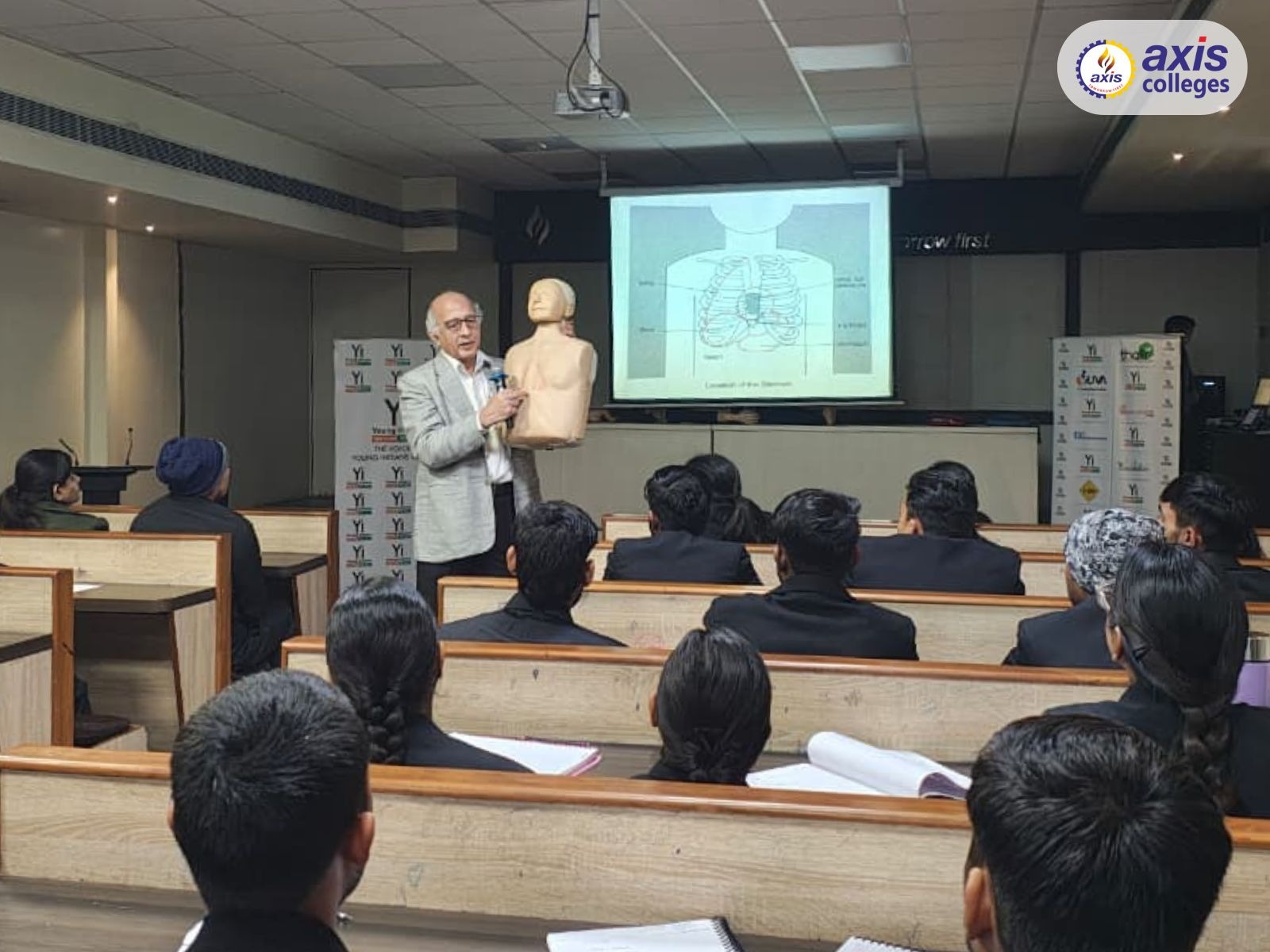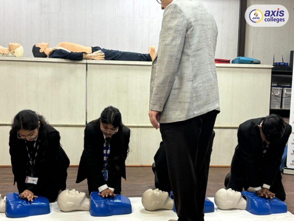 Axis Institute of Pharmacy in collaboration with the Department of Life Sciences organized an intensive Basic Life Support (CPR) and Trauma Care Training Session under the joint initiative of Young India Society and Pranodaya. The program was designed to equip students with essential emergency response skills and strengthen their ability to handle real-life medical crises with confidence and responsibility.