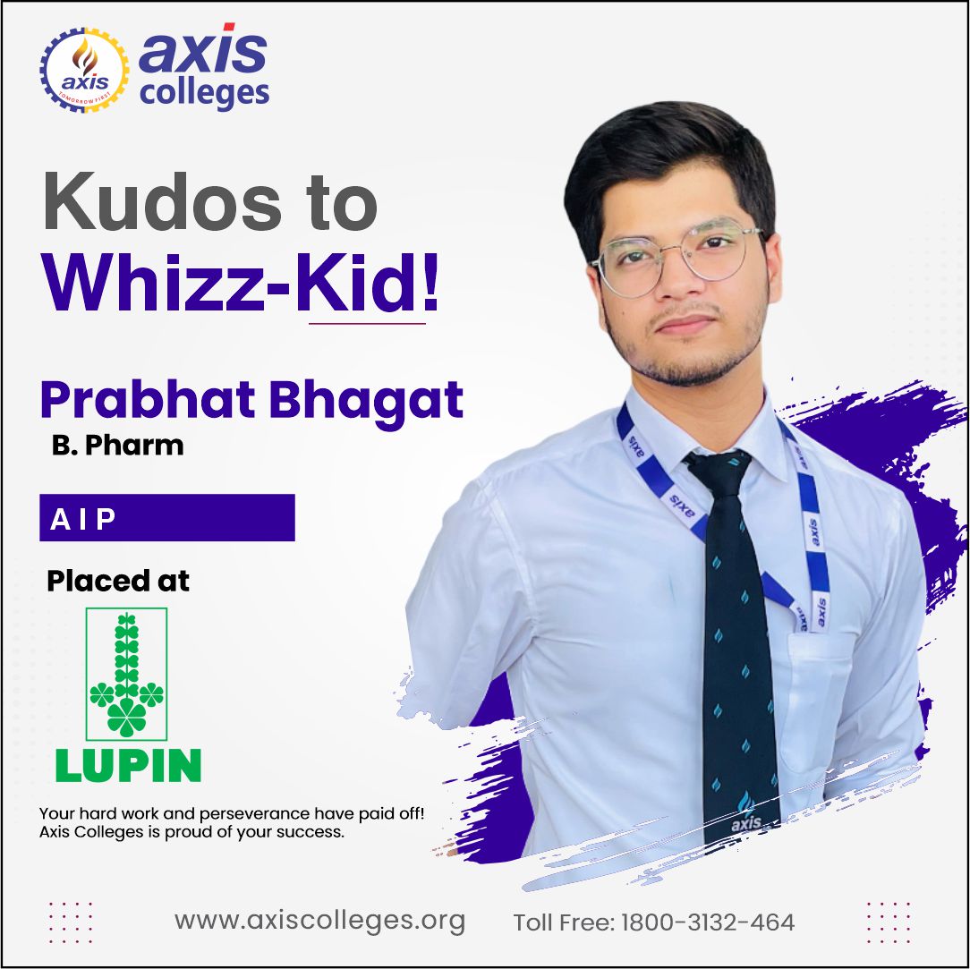 Axis Colleges proudly announces that Prabhat Bhagat, a meritorious graduate of B. Pharm from the Axis Institute of Pharmacy, has been selected as Trainee at Lupin, a leading global pharmaceutical company.