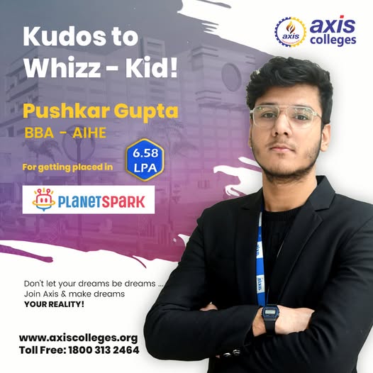 Axis Colleges congratulates our outstanding management student Pushkar Gupta on his selection at PlanetSpark – a leading online learning platform revolutionizing K12 education and professional skill development. His journey at PlanetSpark will contribute to transforming traditional education through innovative virtual learning solutions. We’re proud to see our management students stepping into the dynamic EdTech sector!