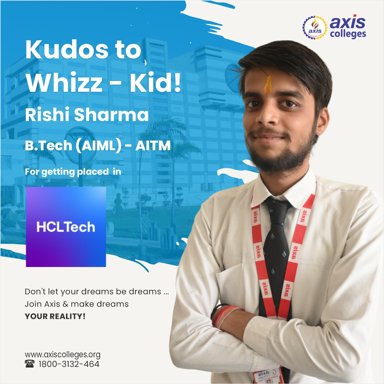Your achievement adds another feather in the cap of Axis Colleges, reinforcing our legacy of excellence in placements.