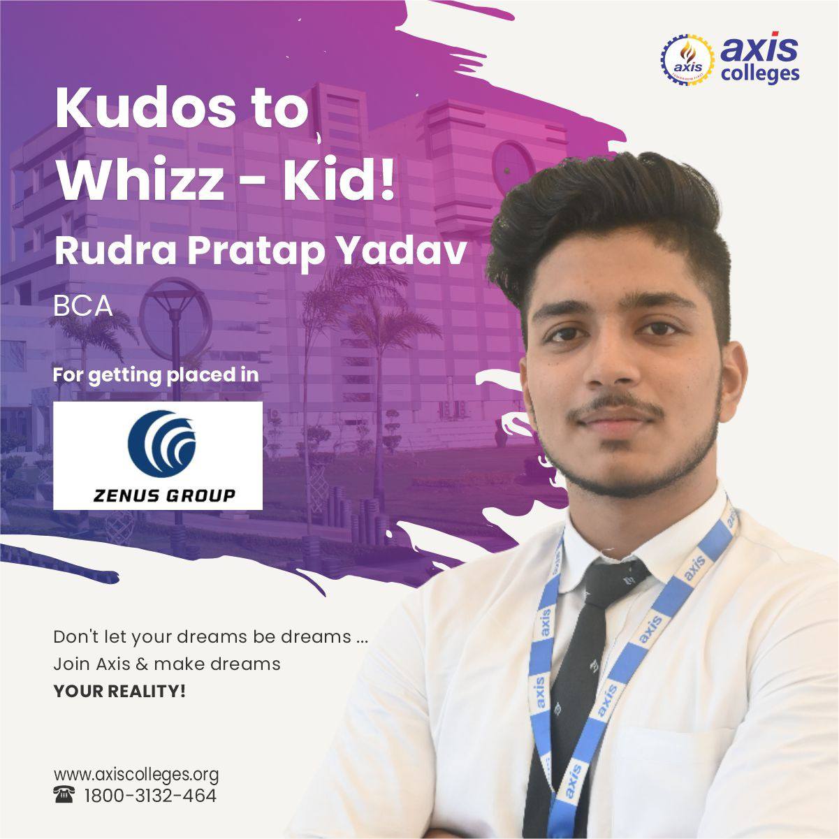 Axis Colleges is delighted to share that Rudra Pratap Yadav from the BCA has successfully secured a placement offer with Zenus Group, a reputed name in the field of technology delivery solutions.
