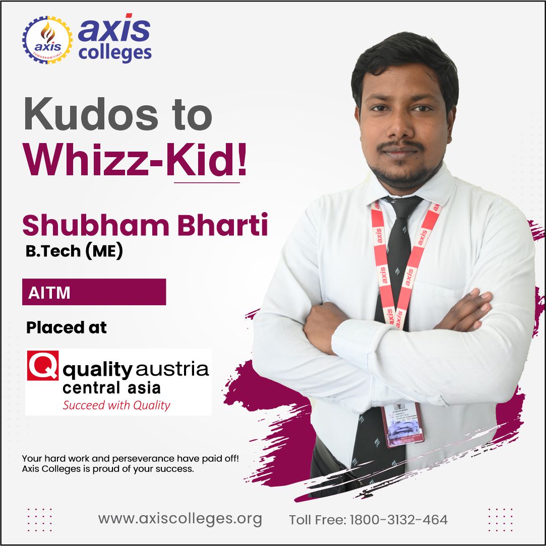 We are proud to share that Shubham Bharti, a B.Tech student from Mechanical Engineering / Electronics & Communication Engineering / Electrical Engineering at Axis Institute of Technology and Management, has been successfully placed with Quality Austria Central Asia.