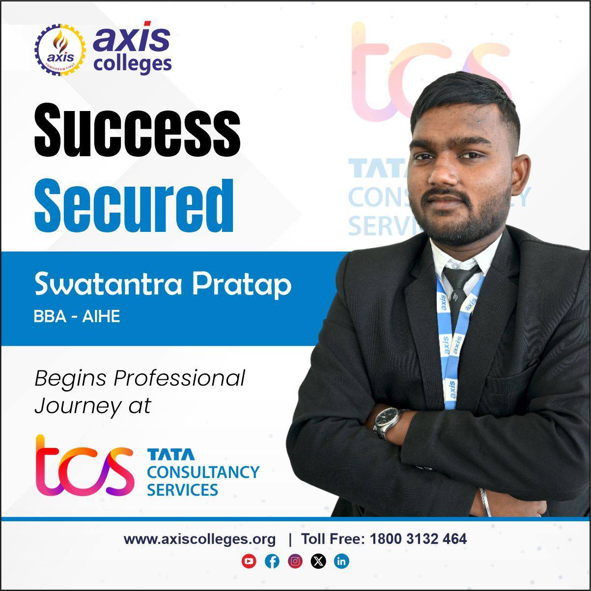 Swatantra Pratap of BBA Final Year from the Axis Institute of Higher Education script a remarkable milestone as they secure prestigious placements with Tata Consultancy Services — transforming ambition into achievement.