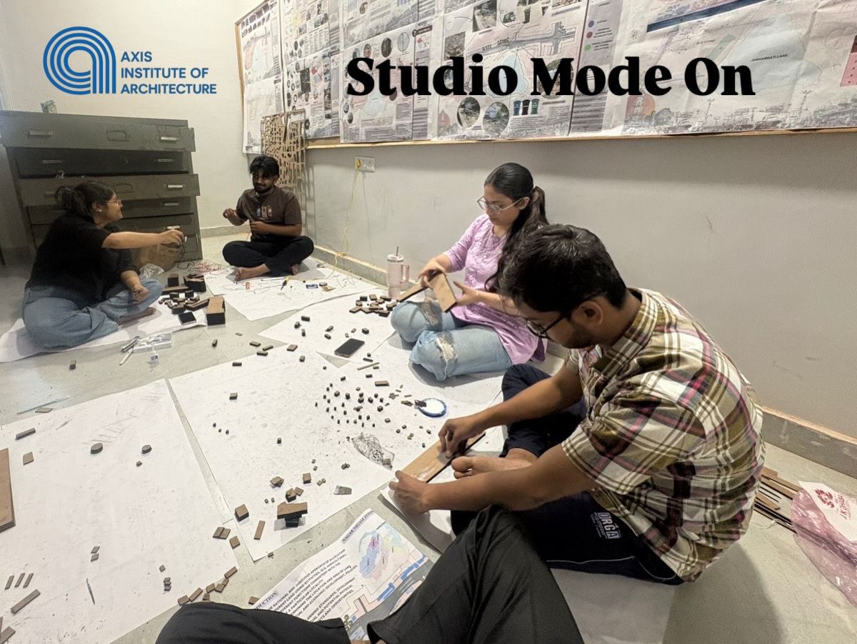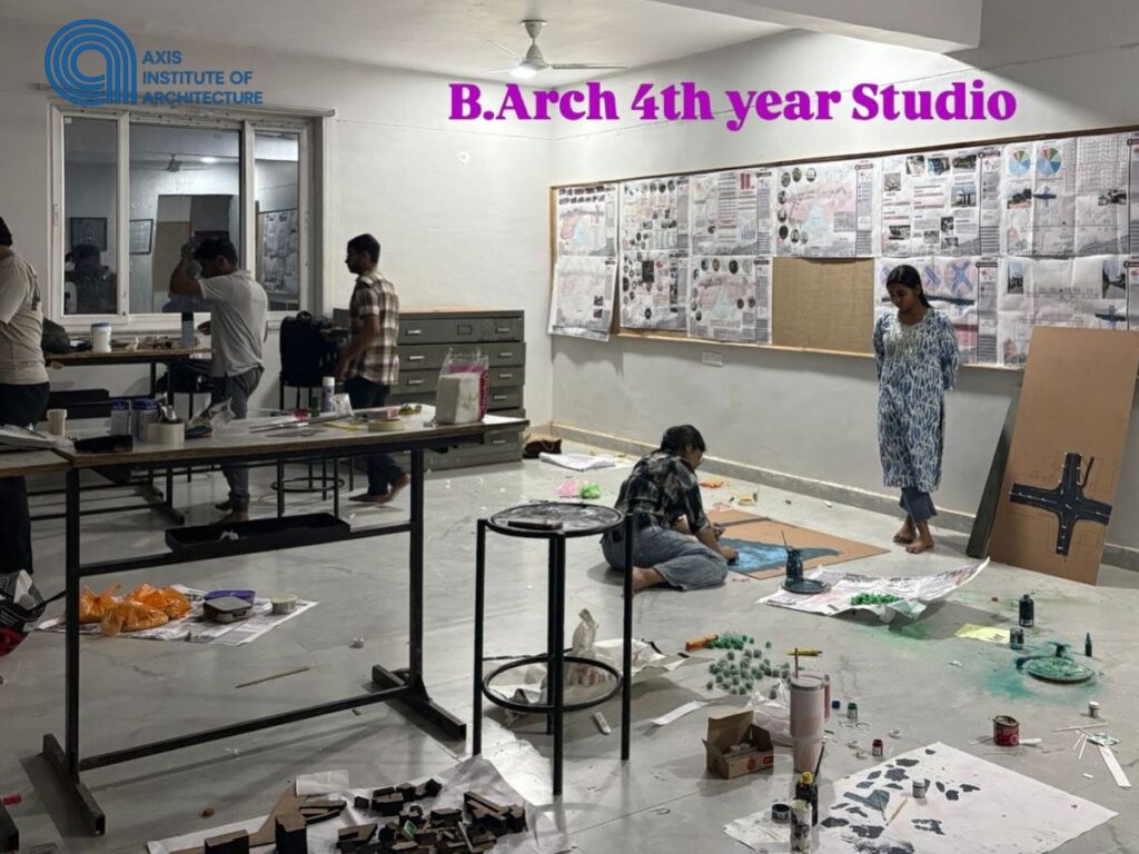 The studio environment is marked by collaboration, critical discussions, and continuous iteration. Students divide responsibilities within their teams, ranging from site analysis and conceptual planning to model-making and graphical representation. This collective approach not only enhances design outcomes but also mirrors real-world architectural practice, where teamwork and coordination are essential.